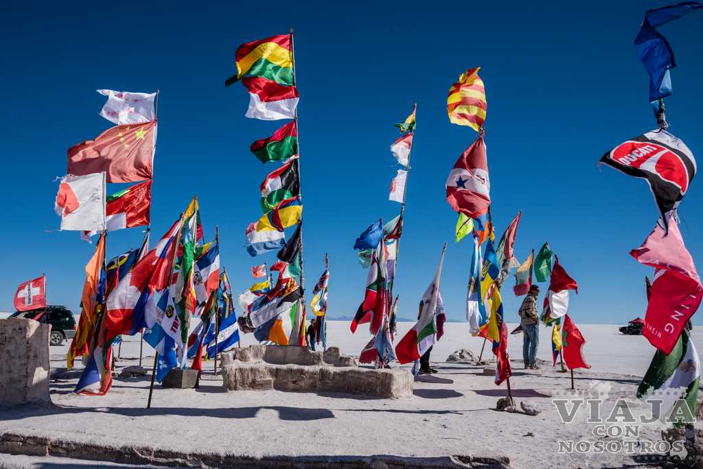 Entramos al Salar de Uyuni, un inmenso mar de sal que alguna vez fue un lago. El paisaje blanco y extenso nos dejó sin palabras. Paramos en unas banderas (no las originales) y en unas montañitas de sal, donde nos hicimos fotos increíbles.